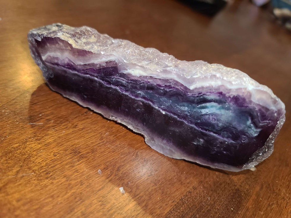 Chunky rainbow fluorite crystal slab